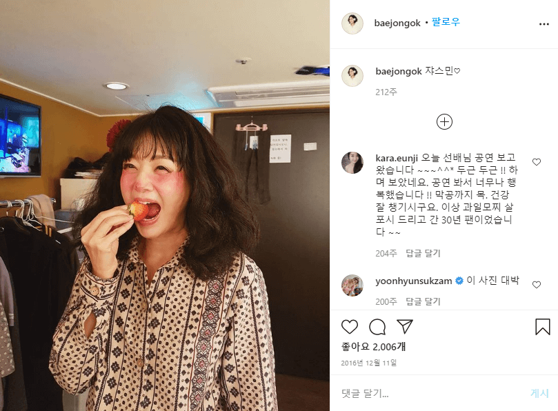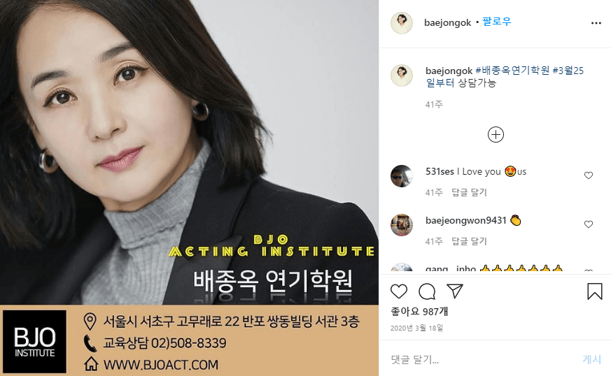 배종옥은 인스타를 시작한지 3년정도 되가는거같은데요. 게시물은 24개로 정말 적습니다. 거의 안한다고봐도 무방한거같습니다. 작품이 나올즈음 홍보목적으로 올리시는거같습니다. ㅎㅎ