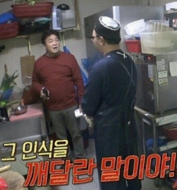 홍탁좌에게 가르침을 설파하는 백종원 (손에 든거 총 아님)