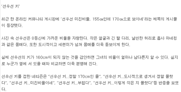 * 두번째는 선우선 키 의혹입니다(선우선 비율).