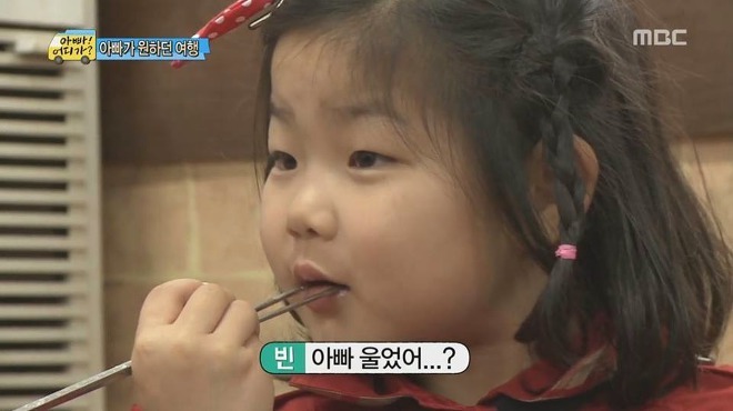 국밥을 먹다가 조용히 빈이 얼굴 바라보는데, 갑자기 말이 없어진 아빠...