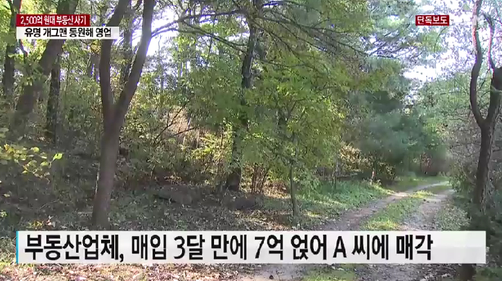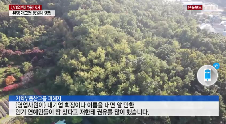기획 부동산 피해자들은 "(영업사원이) 대기업 회장이나 이름을 대면 알 만한 인기 연예인들이 땅을 샀다고 저한테 권유를 많이 했다"고 전했습니다.