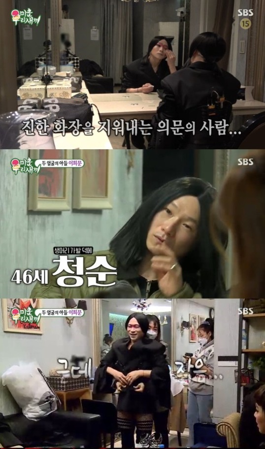 '미운 우리 새끼' 등장한 새 아들은 다름 아닌 소리꾼 이희문이었습니다. 빨간 눈과 진한 화장으로 등장해 관심을 모았는데요. 모르는 사람은 아예 몰라도 아는 사람들을 열렬한 팬이 된다고 하는 이희문이었습니다.