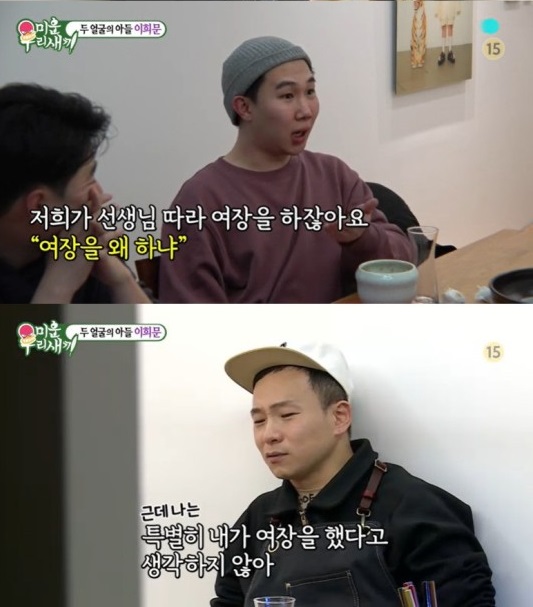 제자들은 이희문에게 "저희가 선생님 따라 여장을 하지 않냐. (사람들이) 여장을 왜 하는지, 괜찮은지 물어본다"고 고민을 털어놨습니다. 제자는 "처음엔 힘들었다. 매니큐어 바른 채 지하철 타고 집갈 때"라고 토로했고 이희문도 여기에 공감하는 모습을 보였습니다.