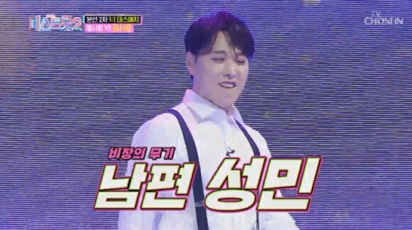 특히 무대 중간 남편 성민이 '비장의 무기'로 등장해, 마스터들을 깜짝 놀랍게 했습니다. 성민이 나오자마자 마스터들은 "성민이잖아?" 하며 벌떡 일어나 놀라워했습니다.
