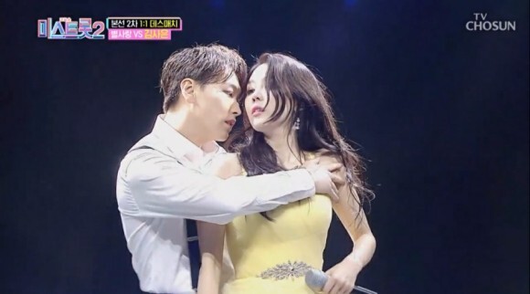 스튜디오에서 김사은 무대를 지켜보던 참가자들도 김성민의 등장에 놀라워 하면서도, 두 사람의 진한 스킨십에 민망해 했습니다. 무엇보다 어린 참가자들도 있어, 눈을 가리는 등 당황스럽다는 반응을 보였습니다.