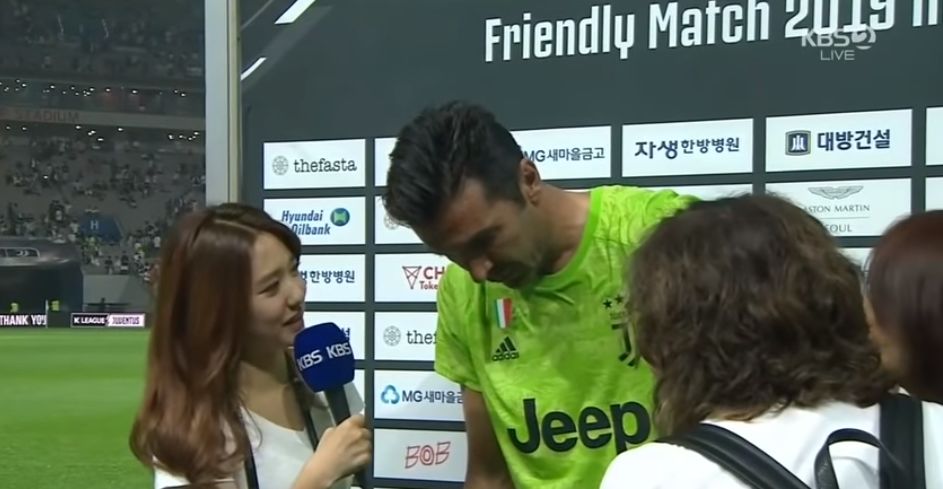 빠듯한 시간이 주어져 통역 단계를 한번이라도 줄이고자 영어로 인터뷰를 진행하는 것으로 부폰 선수에게는