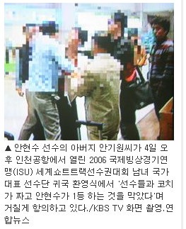 아무튼 분위기가 안현수에게 불리하게 돌아가자 안현수 아버지는 선수단이 귀국하는 공항에서 소동을 일으킵니다.