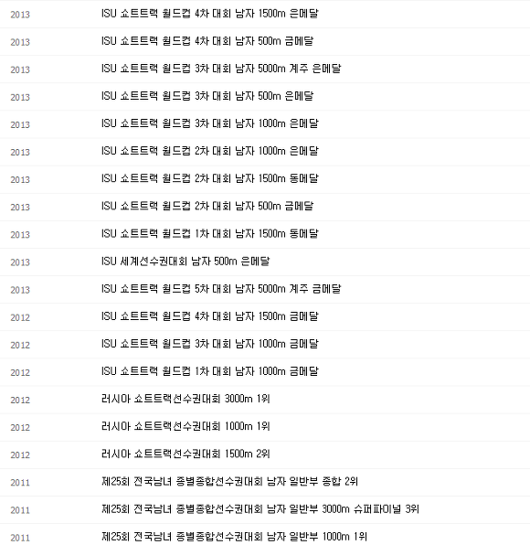 1500미터 2위 석권을 시작으로, 2012년부터 ISU 쇼트트랙 월드컵이나 세계선수권대회에서 무수히 많은 금메달과 은메달들을 획득하게 됩니다.