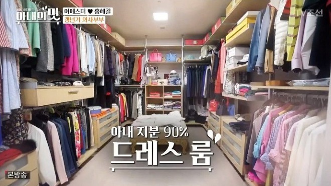 아내지분 90%라는 드레스룸도 참 넓고 역시 깔끔~ 여에스더가 유명 여의사이고 방송출연도 자주하다보니 연예인 못지않게 많은 옷들이 있는거 같습니다.
