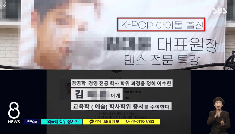 학사학위를 불법으로 취득한 B씨 또한 아이돌 그룹 출신으로 실용음악학원을 운영해왔다고 합니다.