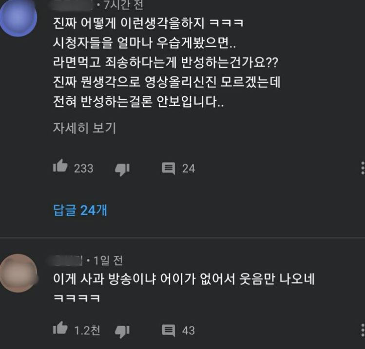 [유튜브 댓글 반응]