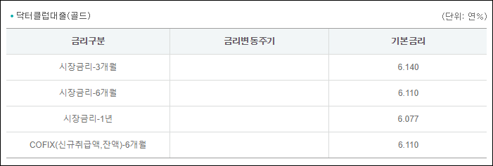 현재 금리는 다음과 적용됩니다. 기본금리는 6.077%~6.140로 적용되는데 이것은 이용기간과 신용등급 1등급인 고객에게 적용한 금리로 신용등급과 이용기간에 따라 변동될 수 있습니다.