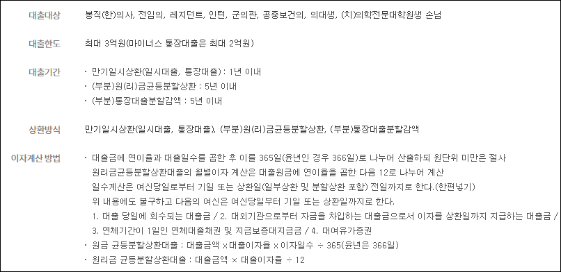 오늘 소개할 상품은 하나은행 닥터클럽-골드로 봉직(한)의사, 전임의, 레지던트, 인턴, 군의관, 의대생, 공중보건의, (치)의학전문대학원생 등이 이용할 수 있습니다. 일반 상품에 비해 한도가 높고 금리가 좋아서 많은 분들이 선택하고 있는 상품이기도 합니다.