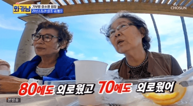 <와카남>에서는 미국에서 70년 지기 친구들과 만나 야유회를 떠난 이수영 회장이 그려졌습니다. 친구가 뒤늦은 나이에 결혼을 결심한 이유를 궁금해 하자 이수영 회장은 답해줬는데요. "늙으니까 외롭더라"라고 솔직하게 마음을 고백했습니다. 다른 친구는 "대학 때 수영이 다리가 예뻐 쫓아다닌 분이 지금의 남편이다"라고 밝혔습니다. 그러자 이수영 회장은 "걔 아냐!"라며 호통을 쳐서 웃음을 자아냈습니다.