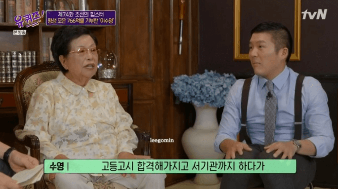이수영 회장은 <유퀴즈>에 출연해 남편에 대해서 밝혀 화제였는데요. 평생 독신으로 살다가 2년전인 83세에 나이에 서울대 법대 동기였던 대구지검지청장 출신 김창홍 변호사와 결혼에 성공했습니다.