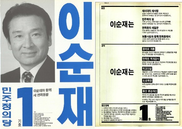 1992년 14대 총선에서는 민주정의당 후보로 다시한번 나서 당시 현역의원이었던 이상수 의원에게 설욕하며 서울 중랑갑에서 국회의원에 당선되게 됩니다. 이듬해엔 민자당 부대변인을 잠시 했던 이력도 있습니다.