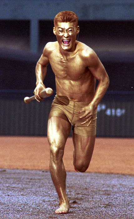 즉, 이종범을 홀딱 벗겨서 황금색 페인트를 칠한 다음에 그라운드를 질주하게 하는 장면이었죠.