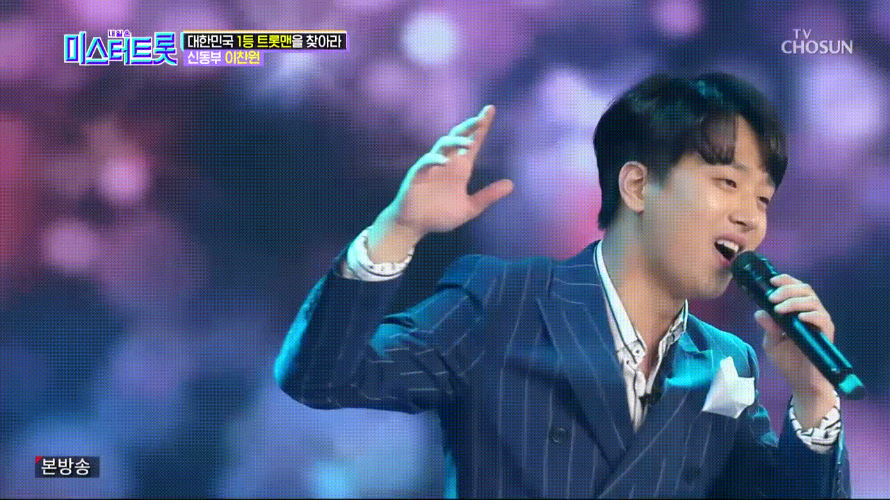 이찬원은 <미스터트롯>에서 큰 인기를 받은 신예 트로트 가수입니다. 예선에서 <진또배기> 불러 화제가 되었는데요.