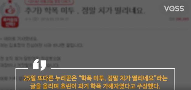" 학폭 미투, 정말 치가 떨리네요 " 라는 글을 올리며
