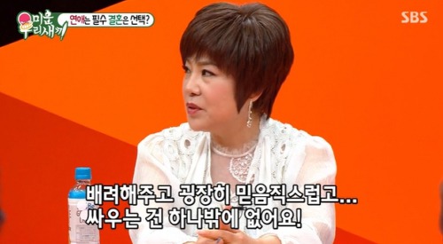 다만 남자친구는 술을 안 마시는데 김연자는 술을 마셔 가끔 다툰다고 하지요. <연애는 필수라고 생각하지만 결혼은 정말 잘 선택해야 하는 것 같다. 신중해야 한다. 결혼을 굳이 꼭 해야하는 것은 아닌 것 같다>라고 말을 하기도 했습니다.
