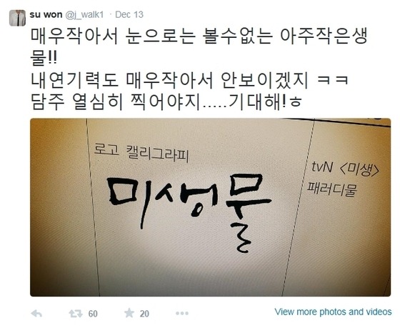 이런 장수원이 상처를 극복했는지, 미생의 패러디물인 '미생물'의 주인공으로 출연합니다.