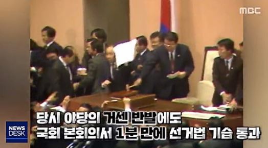 "대한민국 헌정사상 단 한 번도 여야 합의 없이 선거제도를 강제 입법한 적은 없다"는 자한당 장제원의 이 한 마디로 강제 소환된 장성만 전 의원. 문제는 '1988년 선거법 날치기 주역'이었던 장성만이 장제원의 부친이었다는...!