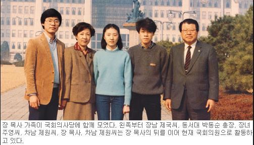 장제원 아버지 장성만 목사는 교육자이며 정치인이기도 했다. 장성만은 1932년 경상남도 부산에서 태어나 부산공업고등학교, 일본 오사카 성서신학교, 미국 신시내티 대학교 신학대학원 등을 졸업하고 목사로 활동했다고 한다.