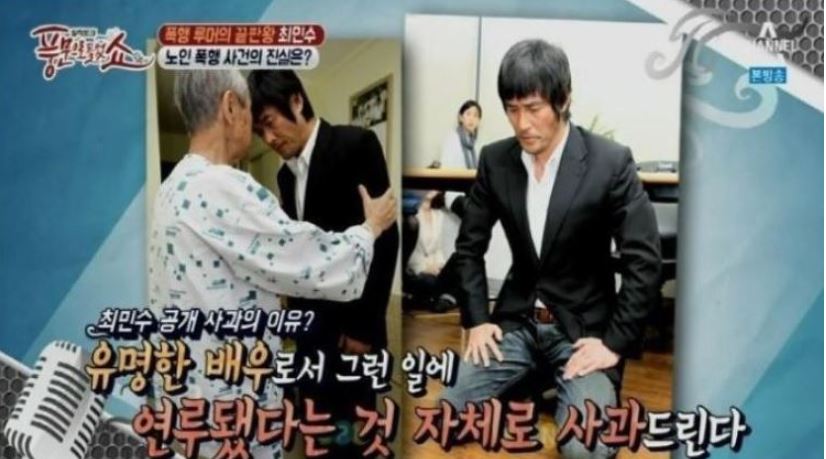 한편 최민수는 10년전인 2008년도에도 노인을 폭행했다는 이슈가 있었는데 이틀 후 최민수는 노인을 찾아가 죽을 죄를 지었다며 공개적으로 무릎을 꿇고 사과를 했었지요.