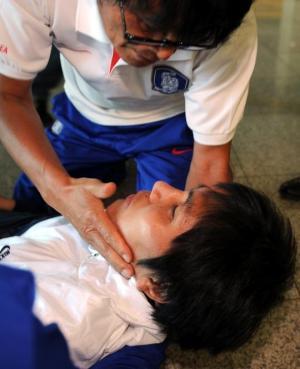 대한축구협회 관계자: "김동진이 이내 의식을 되찾았지만, 자신이 쓰러진 것과 이후 상황에 대해 제대로 기억하지 못하고 있다."