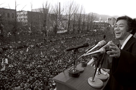 두루마기 차림으로 주먹을 불끈 쥔 채 청중 앞에서 포효하는 그의 모습은 가히 압도적이었다는 평가를 받는데요. 그만큼 청중을 단숨에 사로잡는 명연설가였습니다. 당시 대학로 대규모 유세 현장 등에는 대학생 등 10만명 이상의 청중이 모여 인산인해를 이루기도 했습니다.