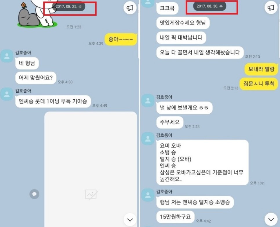 이에 대해 A씨는 "2018년 10월 경 김호중에게 불법 도박 사이트 ID와 비밀번호를 빌려주기 전인 2017년 경부터 김호중은 자신의 이름으로 가입한 사이트에서 불법 도박을 하고 있었다."면서 김호중과 나눈 카카오톡 메시지를 추가로 공개했다.