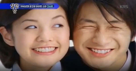 살림남2에서 제공된 자료화면을 보면, 90년대 하이틴 스타로 김승현이 얼마나 잘 나갔었는지 짐작을 할 수 있는데요. 당시 최고 인기 하이틴 스타만 할 수 있다는 교복 모델 광고도 찍고, 당대 최고 하이틴 스타 송혜교와 시트콤도 함께 했었구요.