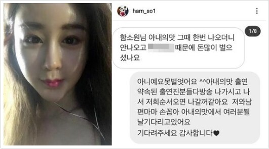 이에 함소원은 "아니에요. 못 벌었어요^^ 아내의 맛 출연 약속된 출연진 분들 다 방송 나가시고 나서 저희 순서가 오면 나갈 것 같아요. 저와 남편, 마마 손 꼽아 아내의 맛에서 여러분을 뵐 날을 기다리고 있어요. 기다려주세요. 감사합니다"라고 불쾌할 수 있는 메시지에도 따뜻하게 대응했다.